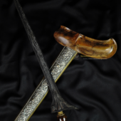 Rp 3.555.000Keris Putut Sajen Dapur keris putut sajen Jenis luk 7 Pamor keris nyanak Tangguh estimasi pajajaran Warangka sandang walekat Tentang Keris Putut Sajen Keris putut sajen diambil dari bentuk handlenya yang berbentuk kepala manusia, umumnya keris putut sajen berada pada jenis-jenis keris berdapur sombro maupun bethok, model kepala putut biasanya ada pada keris-keris lurus. Berbeda… selengkapnya